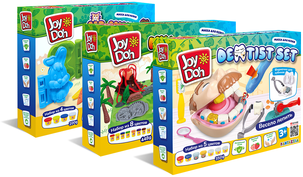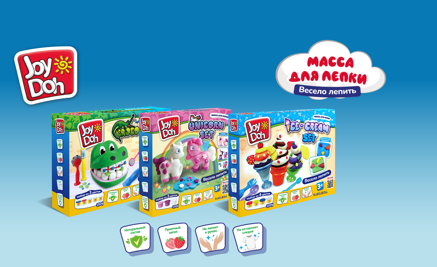 При создании нашей массы для лепки JOY-DOH, мы совместили в ней все привычные покупателям свойства, а также доработали продукт, добавив приятный запах, собрали интересные и красочные наборы, которые способны увлечь игрой каждого ребенка.